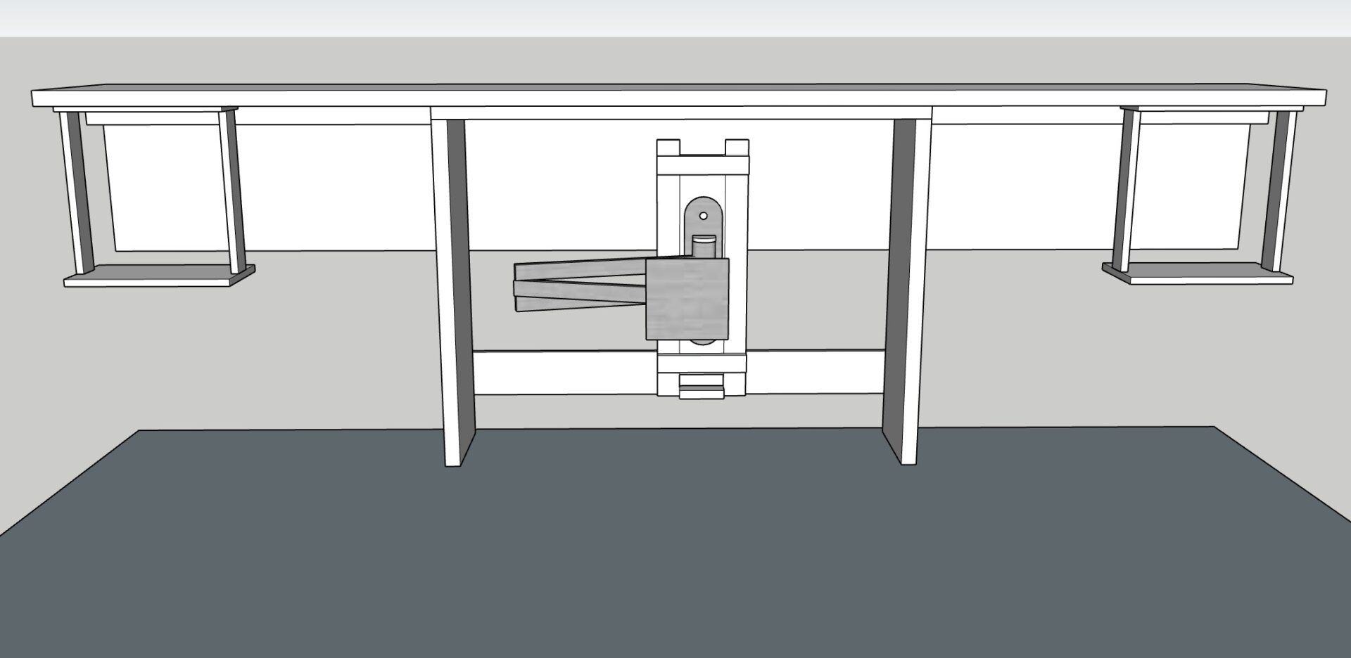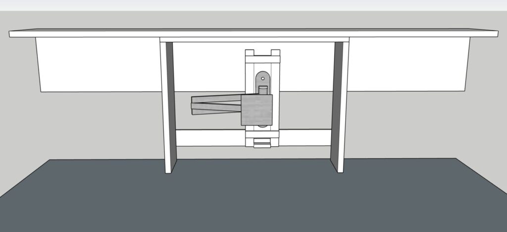 裏板に壁掛け用のモニターアームを取り付けてディスプレイを浮かせますが、このディスプレイによって柱が隠れます。