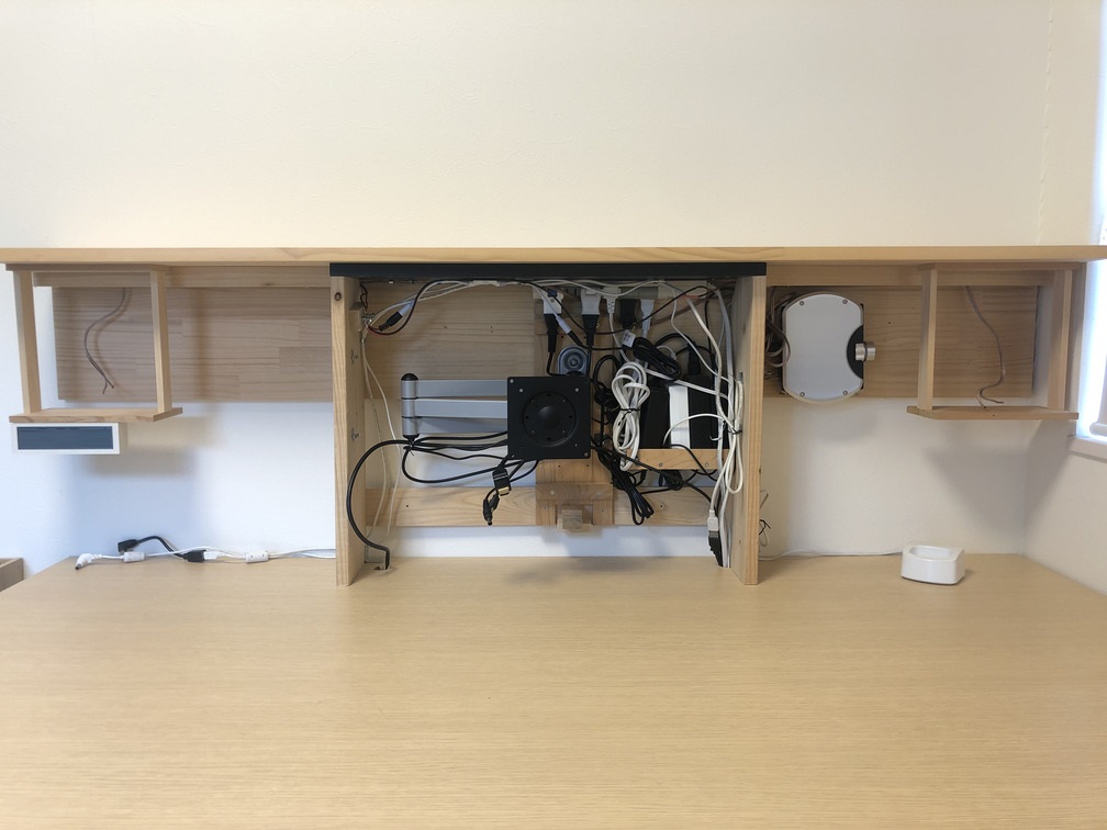 裏板と天板に板を取り付けるのも簡単なので、ケーブル隠しを付けたりなど、実際に何度か改造も行いました。