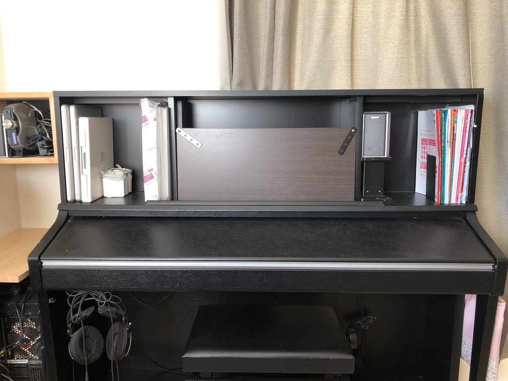我が家には脚付きの電子ピアノがありますが、ピアノの上側が空いていてスペースがもったいなく感じていました。