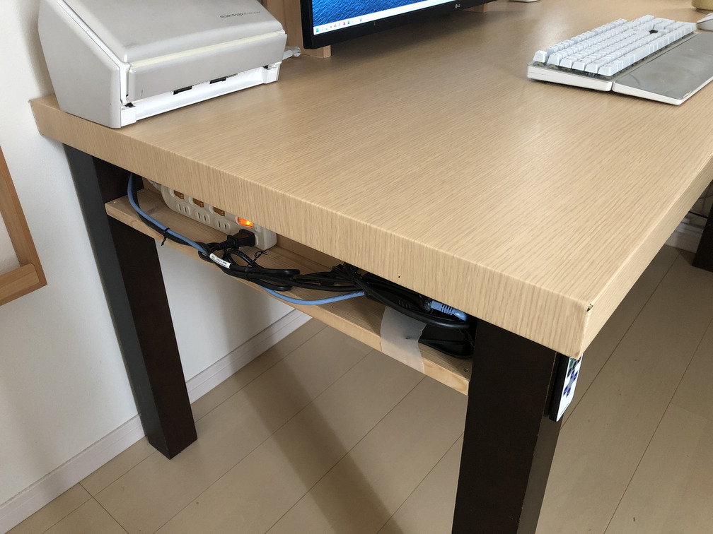 その際は電源・LAN・HDMIケーブルをノートPCに接続しますが、普段はデスク下に隠しており、使うときだけ取り出せるようにしています。