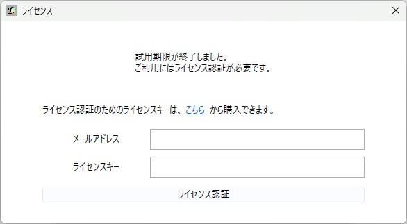 • ライセンスキーは、メールアドレスから一意に生成される文字列。